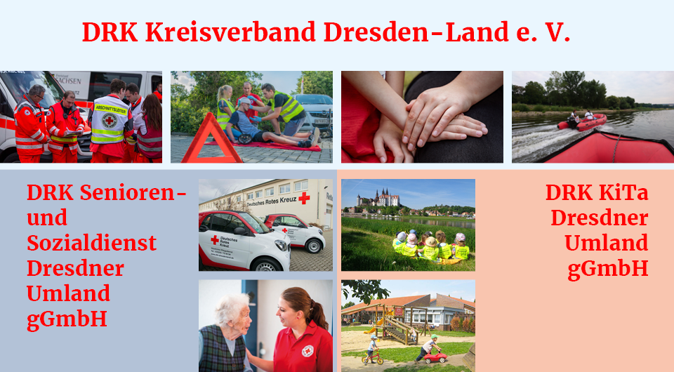 Der DRK Kreisverband Dresden-Land e. V. engagiert sich seit 1990 für die Menschen im Dresdner Umland. Wir sind in der Region in ganz verschiedenen Tätigkeitsfeldern aktiv.
