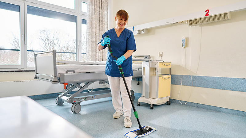 Im Klinikum Nordfriesland erfolgt die Reinigung und Desinfektion sämtlicher Bereiche in Eigenregie. Hierzu sind an den vier Standorten insgesamt fast 100 gut ausgebildete Fachkräfte in der Klinikum Nordfriesland Service GmbH angestellt. Von der Reinigung der Verwaltungsbereiche über Flure und Niedergänge bis hin zu den Stationszimmern, OP-Sälen und Intensivstationen decken die Mitarbeitenden des Reinigungsdienstes ein breites Aufgabenspektrum ab und sorgen somit 24 Stunden am Tag und 365 Tage im Jahr für ein hygienisches Umfeld für Patienten, Besucher und Personal.